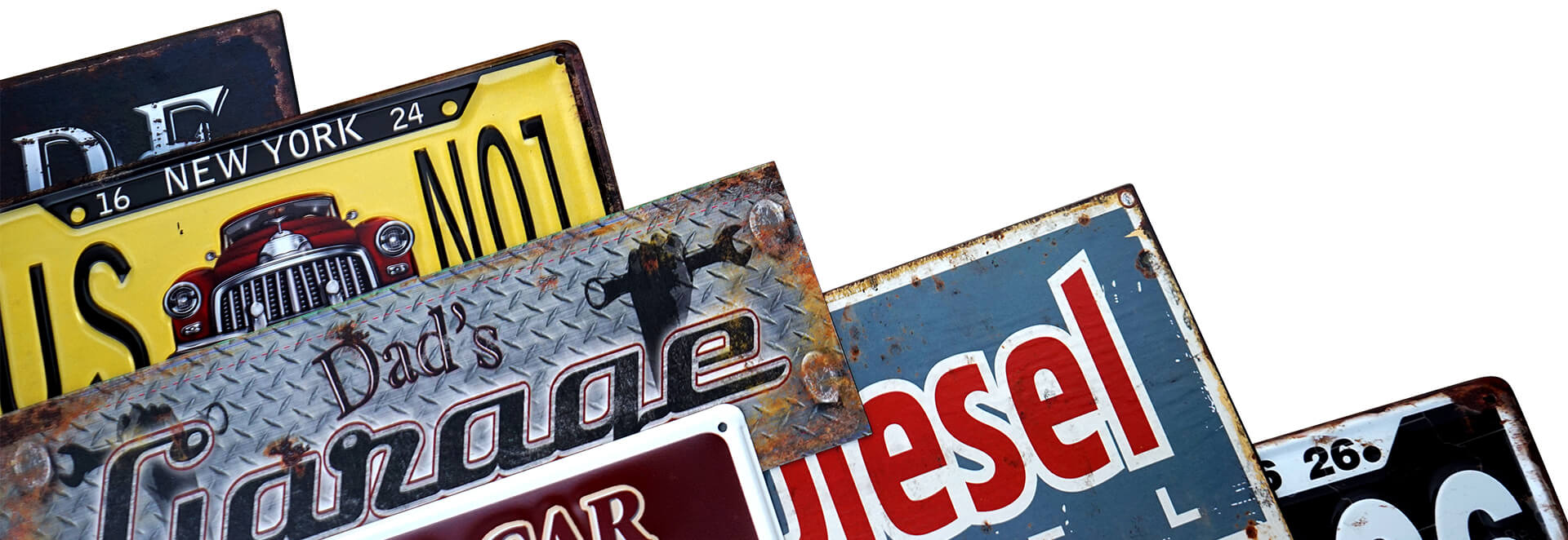 Wohndekorationen mit Blechschildern sprechen ihre eigene Sprache und haben ihr eigenes Flair.